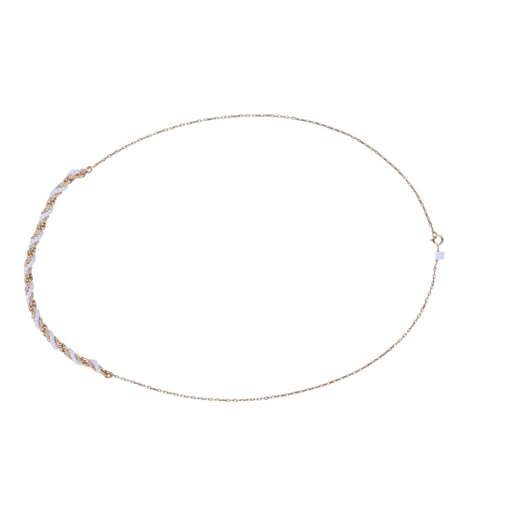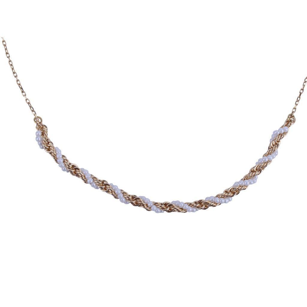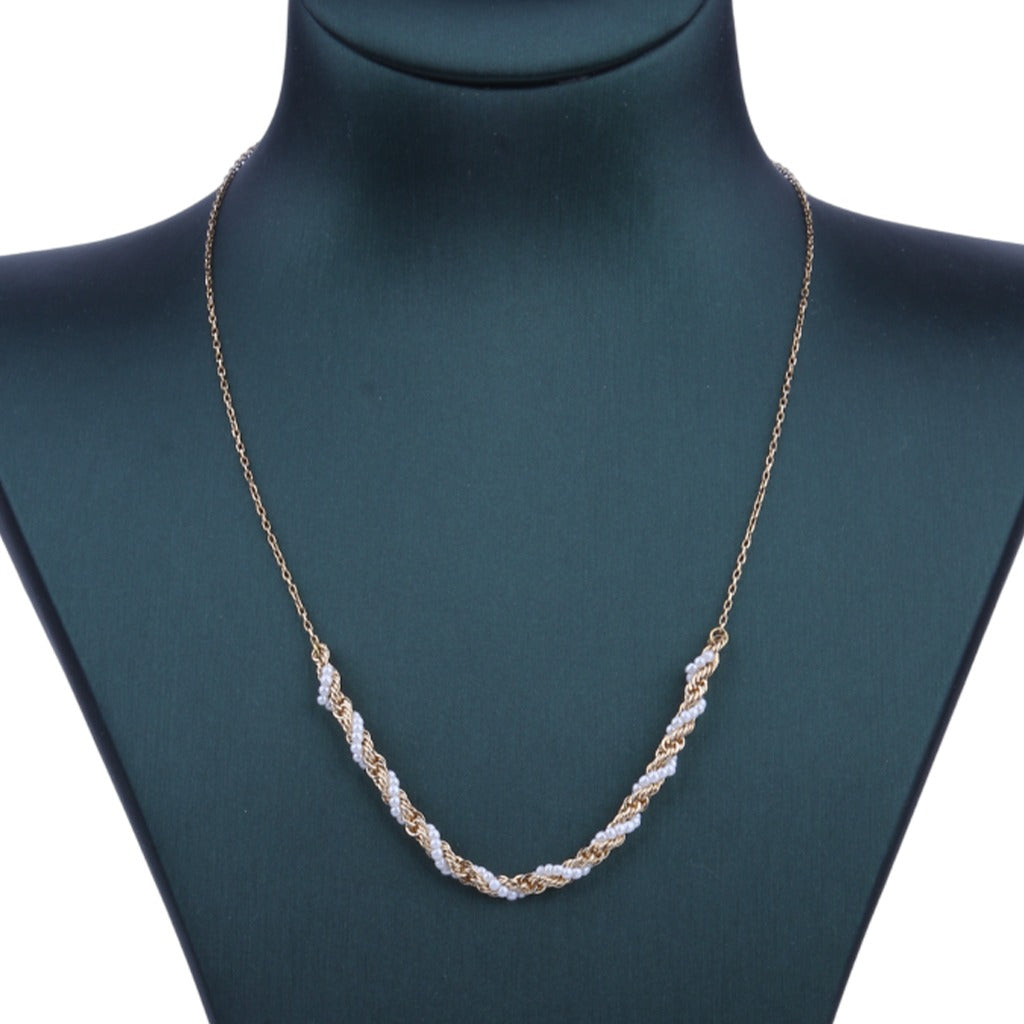 سلسلة تجمع بين القوة والأناقة في تناغم فريد، حيث تتشابك الحلقات الذهبية المجدولة بأسلوب الحبل مع صف دقيق من اللؤلؤ...